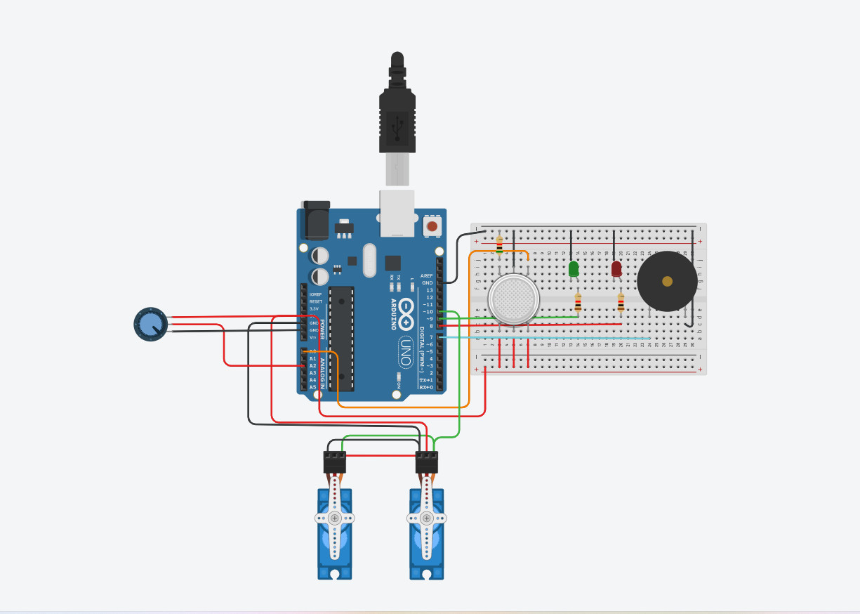 Bước 2 : lắp mạch và động cơ: chuẩn bị mạch arduino, cảm biến khí ga, động cơ servo và lắp mạch theo hình sau đây